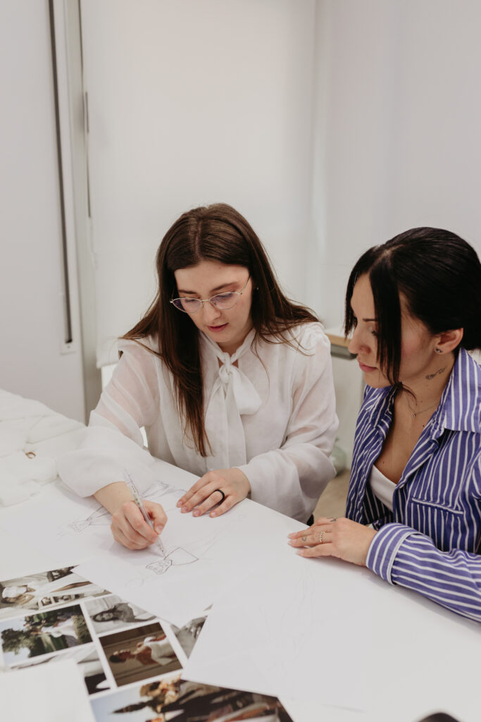 Damos forma al destino. Entre telas, bocetos y pruebas, tu vestido empieza a tomar vida.
